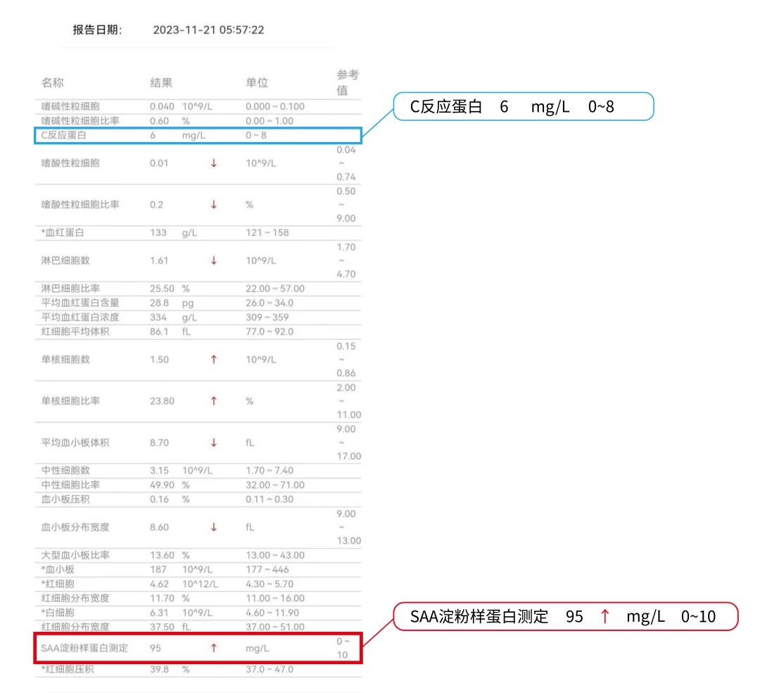 在常見的血液檢測指標中,除常規的血常規、C反應蛋白(CRP)檢測外,另一炎癥指標——血清淀粉樣蛋白A(SAA)的檢測在該類疾病的診療中敏感性備受關注。