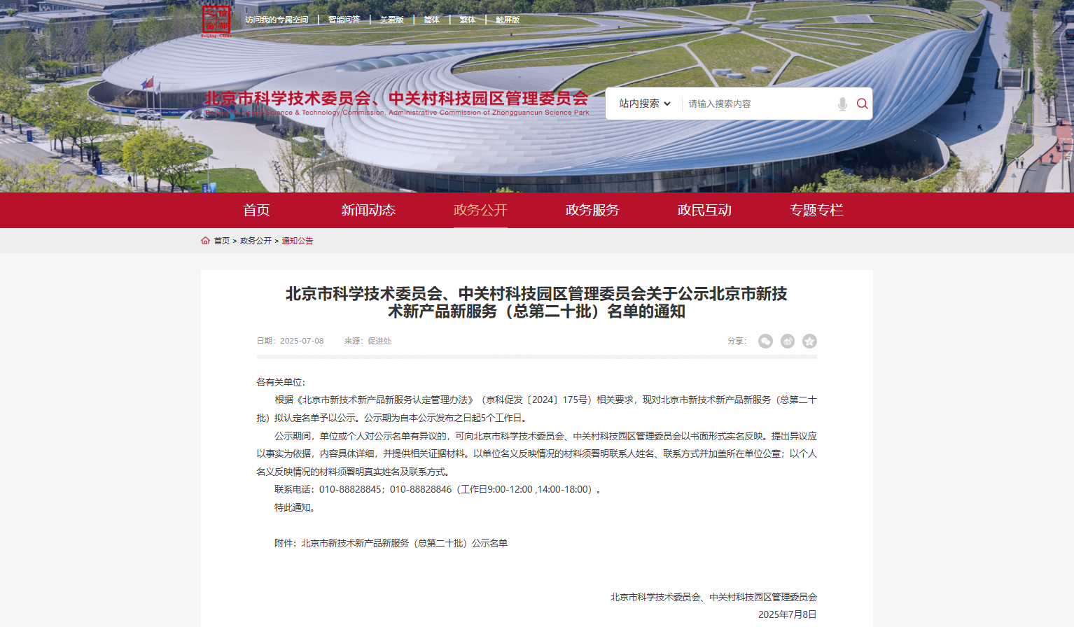北京市新技術新產品新服務認定,是由北京市科學技術委員會、中關村科技園區管理委員會等多部門聯合開展的重要評選活動,有著嚴苛的評選標準,旨在篩選出技術水平高、創新性強、具有良好市場前景和經濟效益的產品與服務。入選的產品和服務需經過層層審核,不僅要在核心技術上擁有自主知識產權,達到國內乃至國際先進水平,還要在改善民生等方面具有突出貢獻,同時,對于推動相關產業升級、促進經濟高質量發展也有著積極的引領作用。