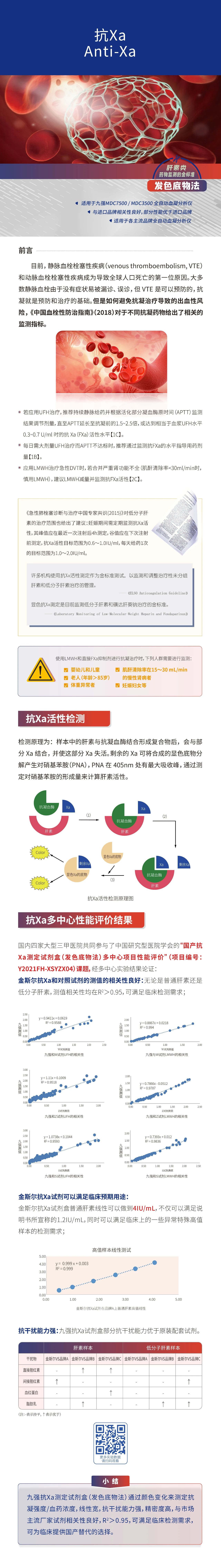 九強抗Xa測定試劑盒(發色底物法)線性寬,抗干擾能力強,精密度高,與市場主流廠家試劑相關性良好,R2>0.95,可滿足臨床檢測需求。