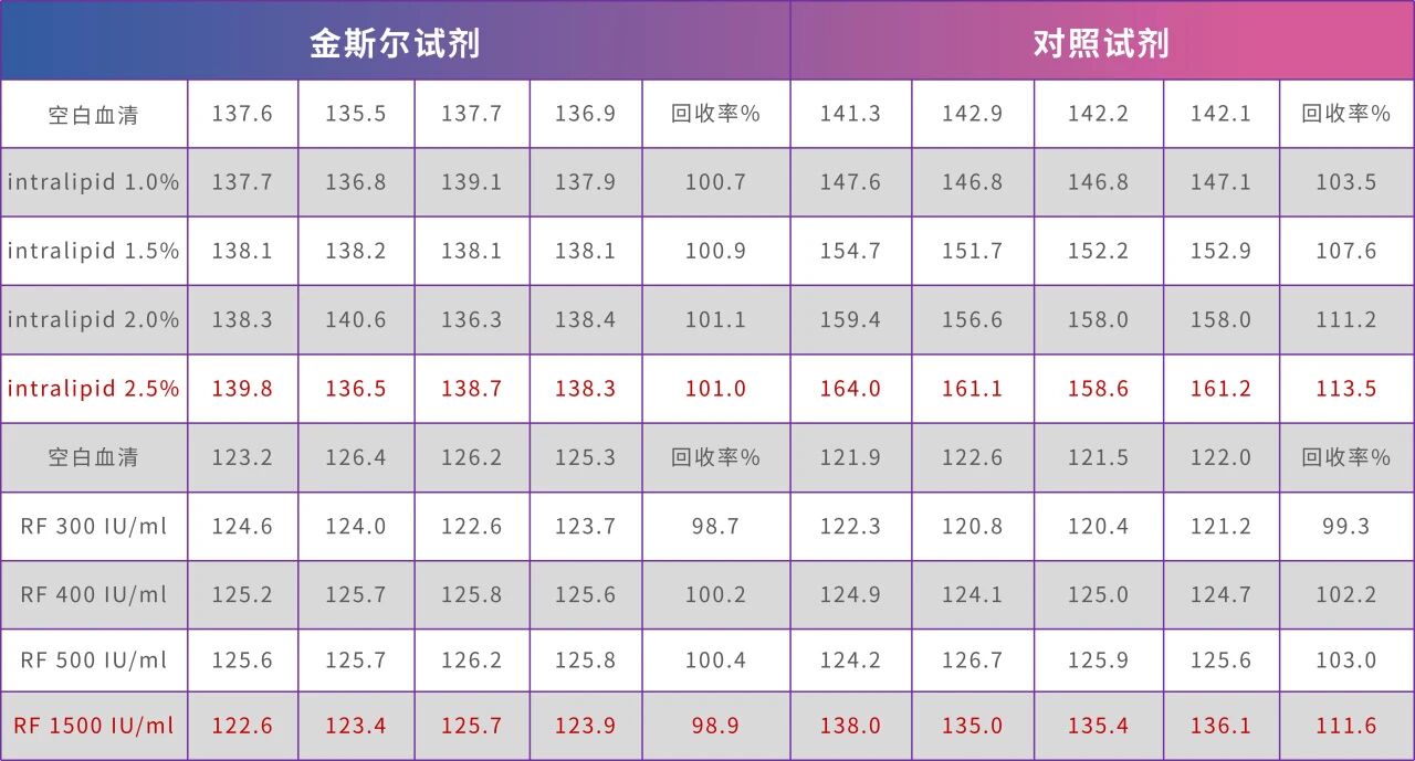 抗干擾能力更強(intralipid 2.5%,RF1500IU/mL)。