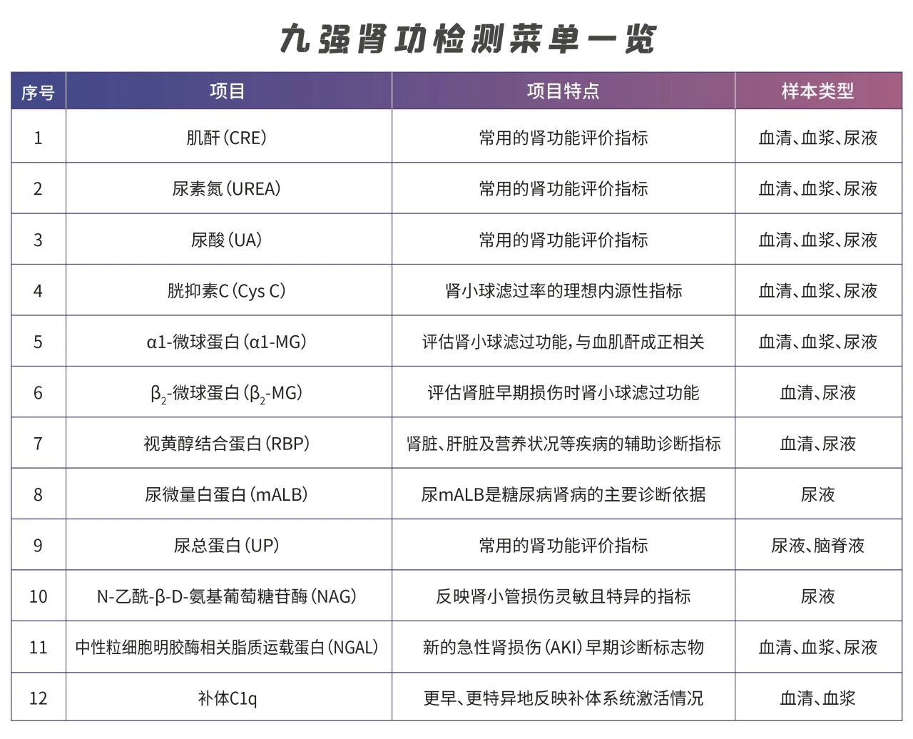 注:血尿均可檢測的項目,以血液標本的臨床意義為主。