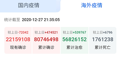 12月26日0—24時,31個省(自治區、直轄市)和新疆生產建設兵團報告新增確診病例22例,其中境外輸入病例10例(上海4例,北京3例,浙江2例,安徽1例),本土病例12例(遼寧7例,北京5例);無新增死亡病例;無新增疑似病例。
